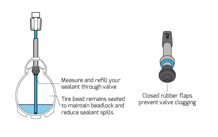 - Tubeless ventil med løs kegle.